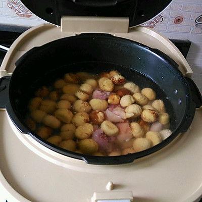 (3)锅中加入适量水,放入姜片、葱段、料酒,将排骨和板栗瓜放入锅中。